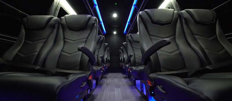 Passengers will enjoy Ultra Lux seating, roof-mounted, center aisle, ducted heating and air conditioning system, individual USB ports, seat belts, overhead Hadley Swan premium luggage racks and mood-setting LED lighting. The luxury cabin is further enhanced by wood-look composite flooring, suede finishes, frameless windows, panoramic skyview front window and 19” LED monitors located in the front of the coach.