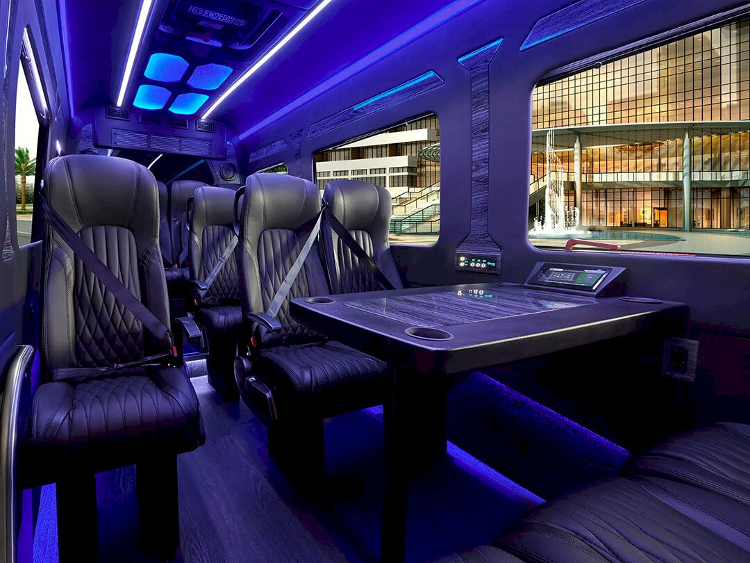 Built on the Mercedes-Benz 3500 170″ Extended High Roof chassis and powered by a 4-cylinder bi-turbo diesel engine, the Grech Executive Sprinter brings a private-jet cabin experience to Chicago’s streets. The full limo wall, 32″ television, and dedicated table make it the go-to option for corporate outings, airport group transfers, and executive roadshows.