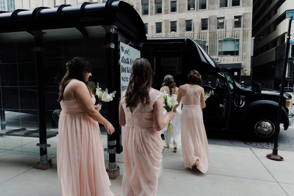 Your initial transportation schedule for the wedding party will be an estimate based on your preliminary timeline. Your planner should tighten up timing and reconfirm addresses and entrances as you get closer to your date, while keeping the relevant vendors in the loop. For example, if your first look is at your downtown hotel, followed by offsite party photos at Millennium Park, and then your ceremony and reception are at a south loop venue, all the related logistics have to be accounted for (time of first look, commute timing to the park, exact drop off at the park, photographer & video ride along, connect photographer and driver via text so they can give an ETA to reboard, commute time to venue, hard deadline to drop off party at venue, etc).