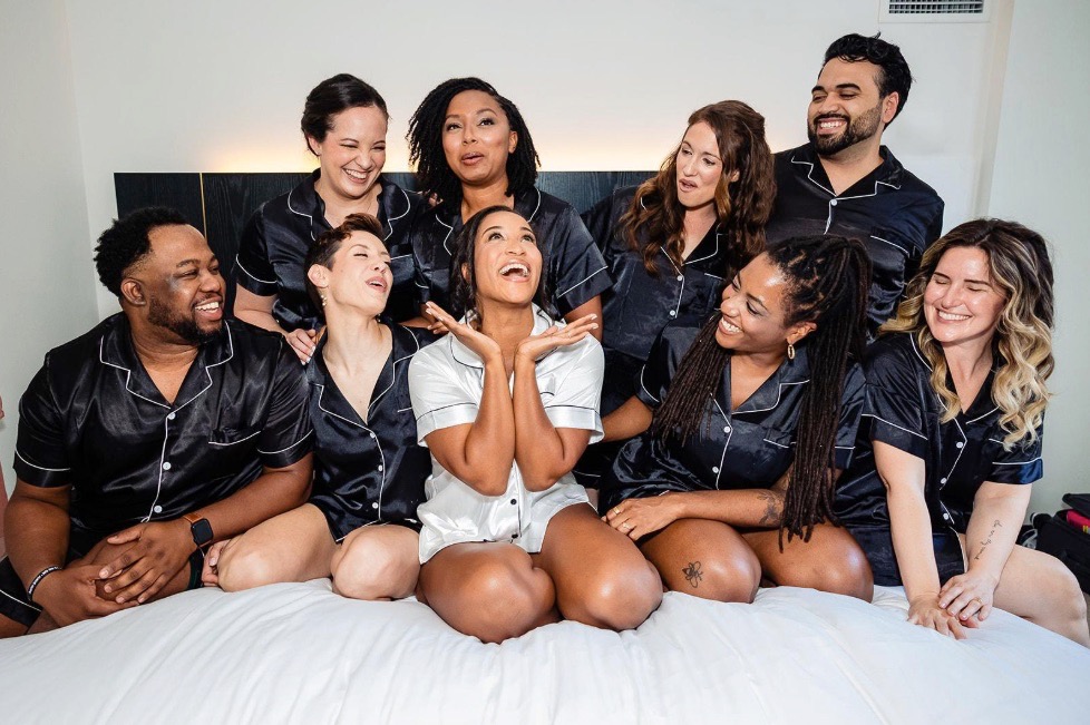 - Where – We highly recommend choosing a pair of roomy and photogenic hotel suites for your readying location. This allows plenty of space for your VIPs to spread out and horizontal surfaces near natural light and outlets for your stylists. Bonus if your separate parties are in the same hotel, separated by a floor or opposite ends of a wing for easy coordination and vendor coverage. Save a couch, bed or wall area to keep clean and free for group photos in those matching PJs or once you’re all dressed!